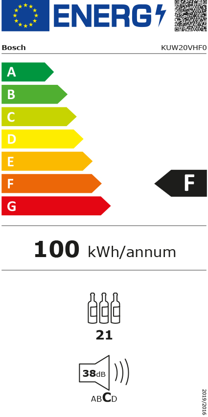 Weinklimaschrank, 58l, Einbaugerät, schwarz, links/rechts, F, F, 1zon, 21fl, 298x818mm, schwarz,