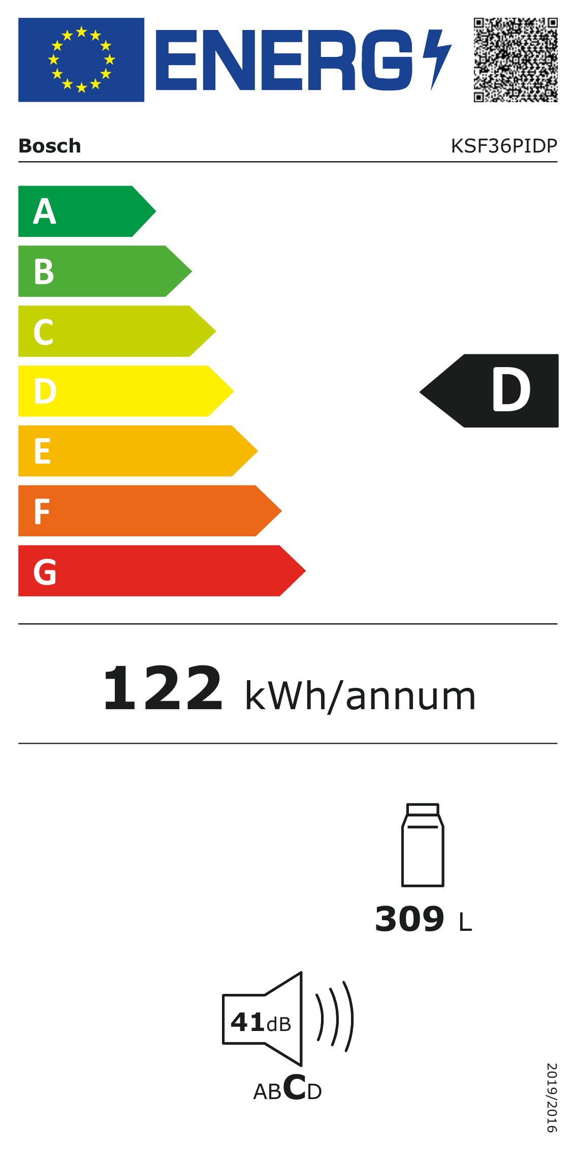 Standkühlschrank, EEK2017:D, 346l, 93kwh, Edelstahl, B600mm, H1860mm, KSV36AIDP